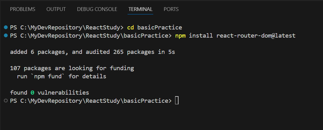 라고 작성하여 react-router-dom 최신버전으로 설치하기