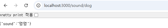 응답 데이터 res에 json 데이터 {'sound':'멍멍'} 을 보내준다.