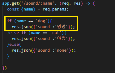 GET/sound/:name으로 호출할 때, name에 따라 내용 출력하도록 하는 API를 만들어보자.