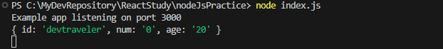 ? 뒤에 id=devtraveler&num=0&age=20 는 req.query 안에 JSON 형식으로 값이 담긴다.