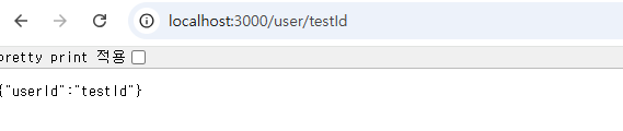 위처럼 파일 작성 후, localhost:3000/user/testId 로 접속해보았다.