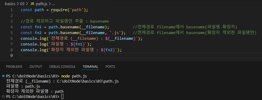 const fn2 = path.basename(__filename, '.js'); //전체경로 filename에서 확장자 제외한 파일명 추출