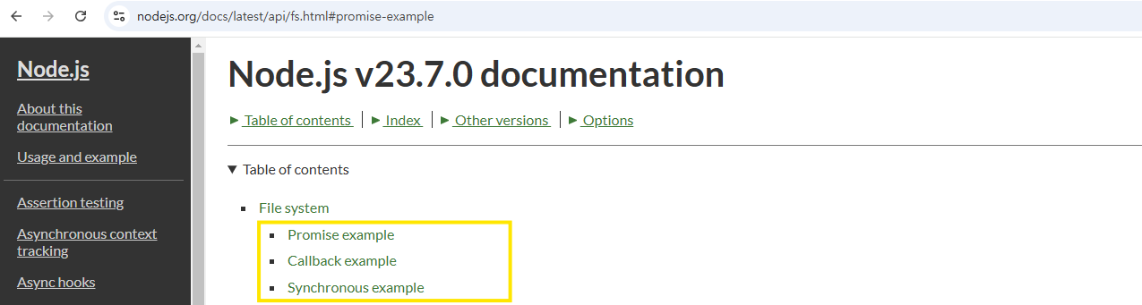 파일을 읽어온다거나 할 때 동기식으로 처리하고 싶으면 Synchronous API 의 함수를 참고하면 되고,