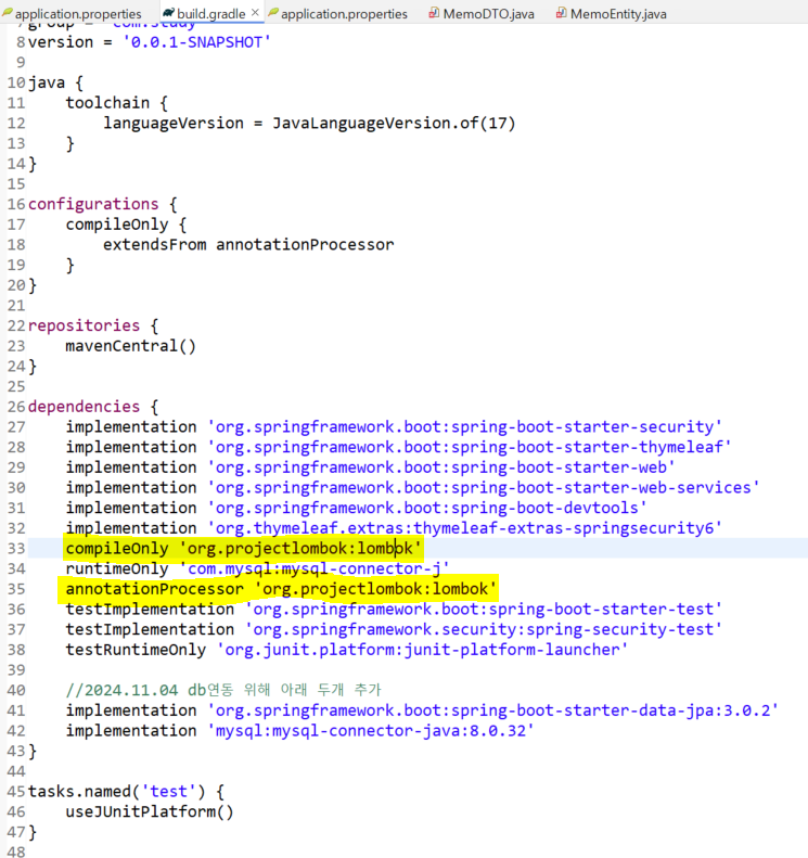 스프링 프로젝트에서 디펜던시에 lombok을 추가하면