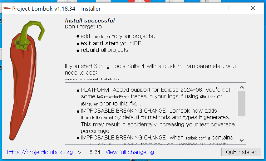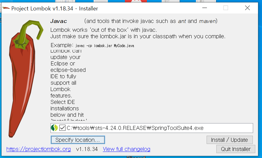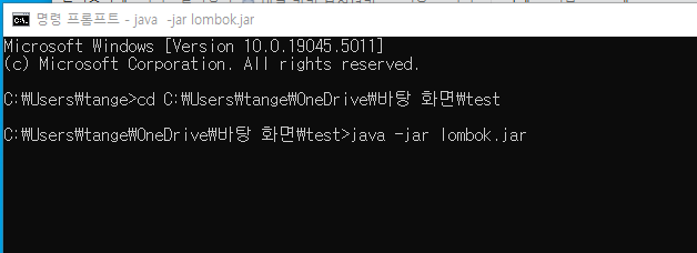 위 명령어를 입력하여 lombok.jar 파일을 실행한다.