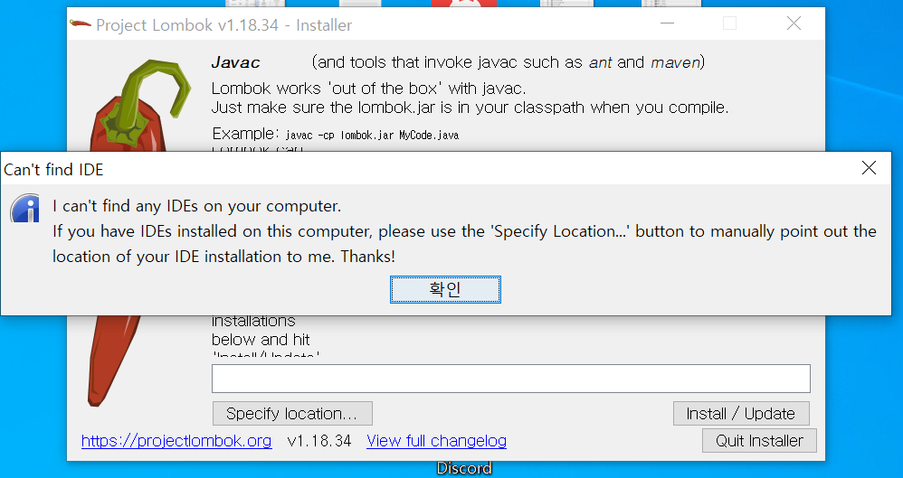 2. lombok.jar 파일 정식 홈페이지에서 다운 후 실행