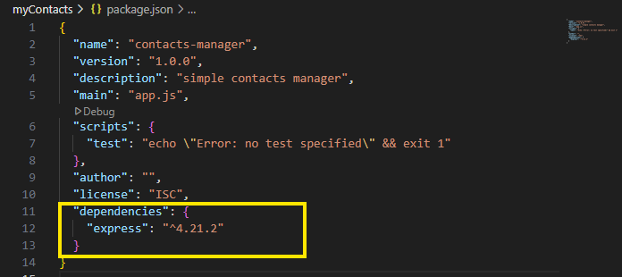 - package.json 파일의 dependencies에 express와 버전이 기록된다.