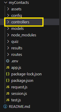 먼저 myContacts 프로젝트 아래 controllers 폴더 생성한다.