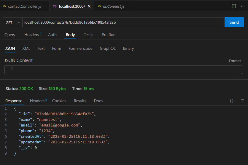 GET localhost:3000/contacts/:id (데이터 1건 조회) 테스트