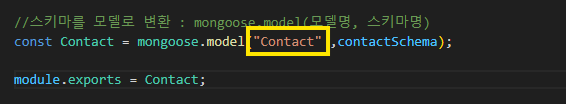 contactModel.js 에서 스키마를 모델로 변환할 때, 모델명을 "Contact"라고 지정했다.