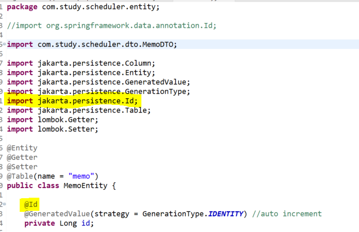 @id 어노테이션의 import 는 다음과 같은 2가지이다.